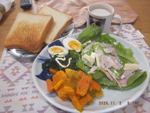 自家栽培野菜→ロロンカボチャ サラダ菜 ロメインレタス サニーレタス ニンジン ホウレンソウ ニンジンとロロンカボチャは下処理後 コンソメとバターで煮込んであります