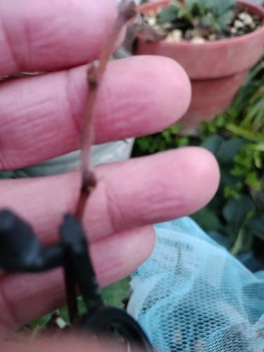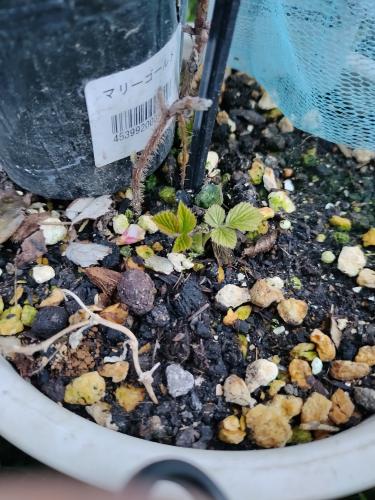 もとからあるのはかなり細い茎で非常に心配していた。でもやっとのことでシュートになるやつが出てきた。これが出ないと終わってたかもしれない。まだまだ寒いけれど、早いうちに出てくれて救われる思い。