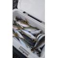 釣果は…カゴ釣りで18〜32cmのアジ37匹と小鯖5匹