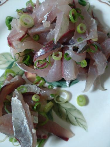 釣った魚の下処理後すぐ夕食の支度を始めた 今日の献立は「アジのユッケ風」と「サバの梅煮」 アジは最初、刻みネギと和えて刺し身にしようとしたけど、無性にユッケが食べたくなってアジのユッケ風にした アジユッケめっちゃうんまい サッパリとしたアジの身に合う 飯止まらんわ〜 サバは…普通に美味い