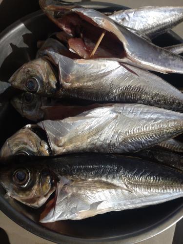 釣ったアジをエラと内臓を取って丸干しにしてみました
