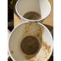 ほぼ最後の収穫。5房取った。まだ2、3房残ってるが粒がだいぶ汚くなってるので放置している。オーブンペーパーで囲っていたやつは割ときれいかなと思う。
