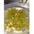 二つだけ収穫。重さは二つで411gだった。洗って、回転式の水切り器で水切り後、一部は冷蔵庫や冷凍庫へ。この時季は甘味が優勢。むしろレモン汁をかけたほうが良いくらいかも。