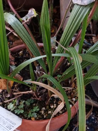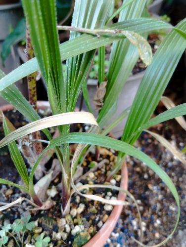 この植物はナツメヤシだった。植物を検索できるアプリによると、ヤシとかランの仲間だと出た。さらに調べていくと、自分と同じように、ナツメヤシのドライフルーツの種から発芽させた人の、苗の写真に遭遇。これに間違いないと思うにいたった。