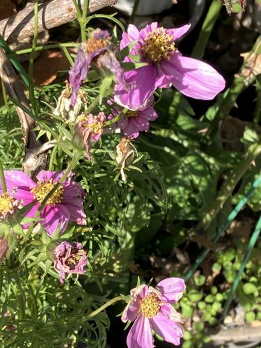 種を取りたいので買ってきたコスモスだが、まだ咲いてるのもあり、どうもちゃんと結実してないようす。何とかならんかな。