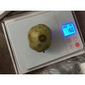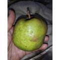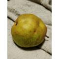 ついに収穫したラフランス。しっかりしたものが二つ。並んで実っていたが、よく大きくなったなあ。