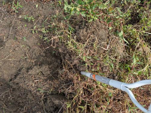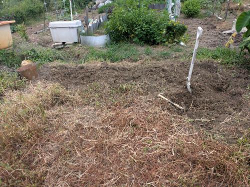 集めた枯れ草も本当は鋤き込みたいんですけど、根っこ切って掘り返すだけで十分いけそうなくらい根が詰まってます
