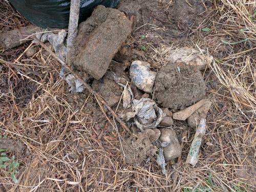 石やらごつい木の枝やら塩ビパイプやら…池の底だったからゴミも残ってるんやろな…