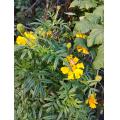 赤色やオレンジ色の花はファイヤーボール、黄色の花はアフリカン種。黄色いのは、最近は小花になってきた。ファイヤーボールの花のサイズに近くなってむしろ良かった。