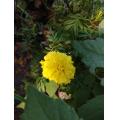 ボワッとアフロヘアぽく咲くタイプと、一重でヤマブキ色で咲くタイプの2種がある。写真は後者。