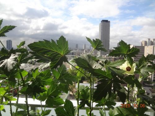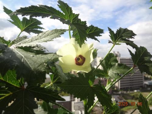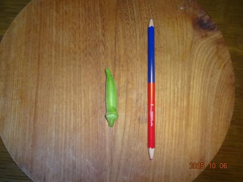 オクラ日記、1個収穫、累計101個。1輪開花。
