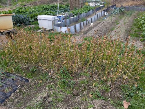 残った茎葉は刻んで去年の古くなったボカシとコンポストに入れといた。