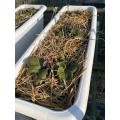 赤く疲れた葉を除去してプランターに切りワラを敷きました。
