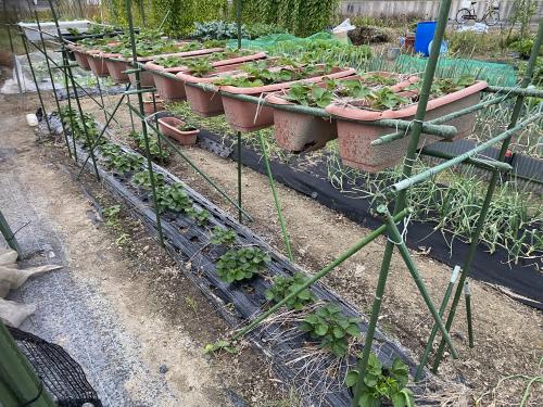 イチゴもつるを下に下ろすように作れる方がきれいなイチゴが採れるのかな…できるか勉強してみよ