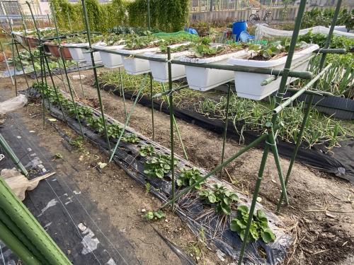 私も100均のプランター台で30cm程度かさ上げして栽培してますが、アルトロさんの方法は屈まずに手入れができそうなのでナイスアイデアと思ってました。強風対策が必要なんですね。