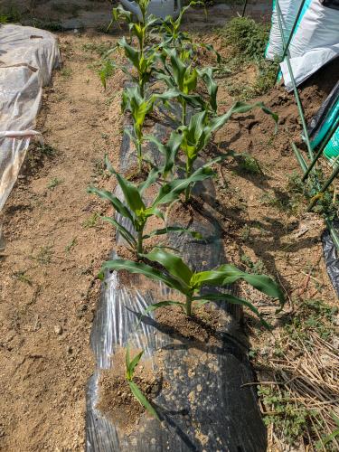 無事定着したであろうとうもろこし。 ベビーコーン狙いにしてるのでいいのだけど…はぁ〜これが今9月頭ならちゃんと出来ただろうなぁ…