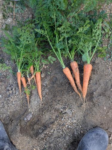 やっぱたまねぎもだけど、ちゃんと水やりしないと実が大きくならないか… 旧畑はどうしても足が遠のき気味です 苦笑 とはいえうちのにんじんは葉がメインなので遠慮なく収穫♪ 下の実は息子たちと生でぽりぽり頂くにはちょうどいいw