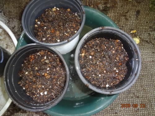 富士早生、本日、播種しました。昨年購入の種、3ポット、3粒ずつです。プランターで2株予定。