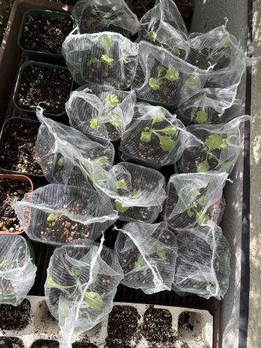 カラカラの日照りの次は、雨と雷でした。 雨に打たれないようにと気をつけていましたが、育苗中の苗に異変が。 まさかの強敵に襲われていました。 葉っぱがないよ、芯だけ残ってます。 何もない育苗ポットも。 こんな時でも虫は来る。 なんとシンクイムシ、豪雨でもお構いなし。 せっせと捕殺して、ネットをかぶせました。