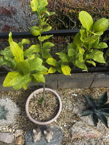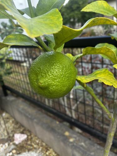 レモンがほんのり色付いてきたような気がします 最近まで2個だと思っていましたが、よく見たら3個でした なんか得したような気がします