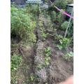 日曜日の雨が降る前にオクラと空芯菜の畝を