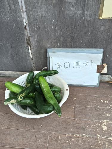 完全に夏から秋に気候が変わっています 畑も秋野菜に変更です キュウリもお疲れなのでおしまいです 撤去作業中に収穫したB品キュウリは無人販売の棚で 無料で食べて頂きます