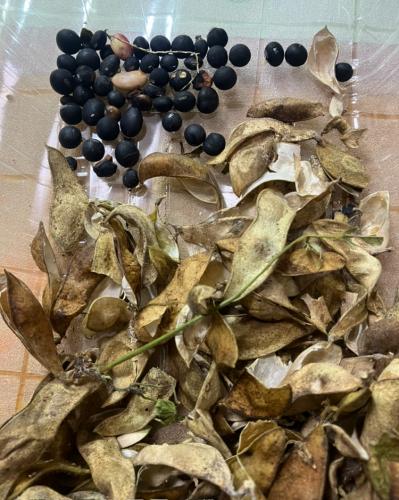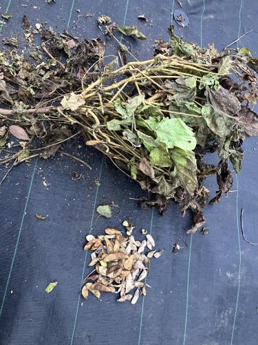 大半枯れたので収穫としました。 やはり空鞘が多く、黒豆としてはあまり取れ高が無さそう。 カメムシ避けで防虫ネットで囲ったら、蒸れて病気やカイガラムシが発生し、逆に害になってしまい、収量が減る結果に。 来年リベンジしたいと思います。