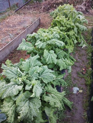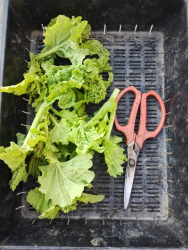 寒咲花菜(なばな)を収穫し、傷んだ葉を摘葉しました。