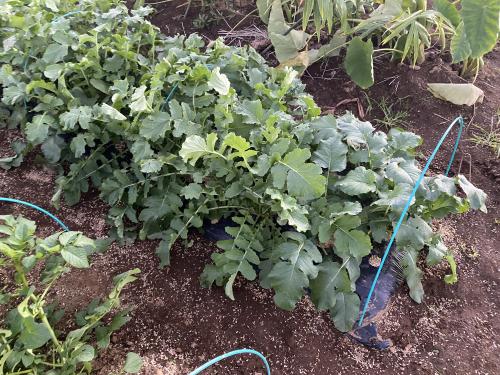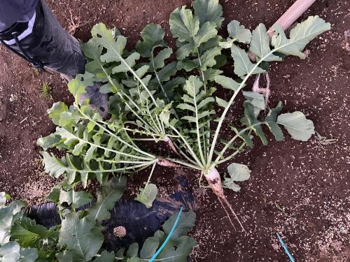 その後、大根ゾーンの間引きを忘れ、三太郎が3株植えになってたw 抜ける箇所は間引いたけど、葉が折れそうヶ所はそのままにしたww