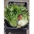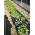 細葉千筋京水菜を間引き、欠株部に移植、追い蒔きしました。