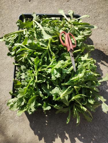 大葉しゅんぎくを収穫し、地上部を刈り取りました。