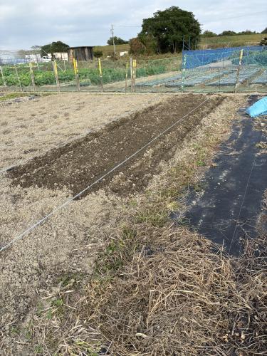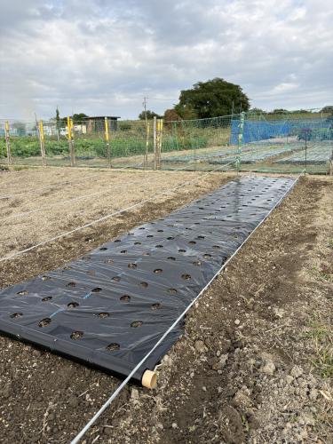 超極早生タマネギ植えつけ場所の畝立てとマルチ張りをしました。