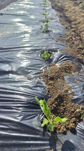 こんな時期に定植することはないなあ。最低気温は零度くらいなんだけど、大丈夫かなあ、とりあえず、マルチと不織布のトンネルをしていますが、べた掛けもいるかねえ。それはやりすぎかなあ。 苗の出来は良いね。これだけ太い根があれば、いいと思うんだけど、温度がねえ。根付いてくれると信じているけど。