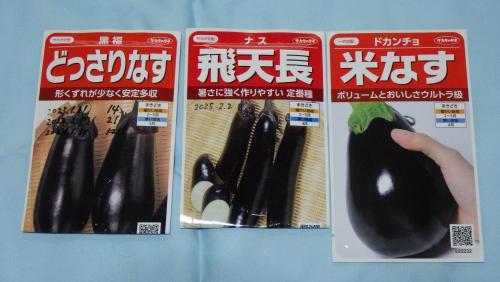 2026年ナス栽培始めました。 黒福:長卵形 飛天長:長茄子 ドカンチョ:米茄子