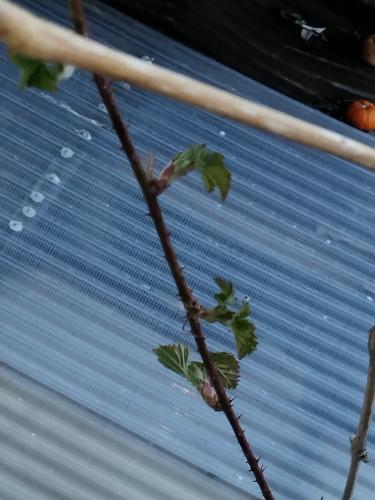 株元に新芽を二つ発見(写真一枚目)。ボイセンベリーもトリプルクラウンも強健で良いな。昨秋で役目を終えた茎は取り除いておいた。