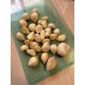 ネギ科の多年草で、球根(鱗茎)を香辛料として用います。5月頃に白い小さな花を咲かせるが、栽培時には鱗茎を太らせるために花芽は摘み取り、摘み取った茎は柔らかい物であれば野菜として利用されます。暖地の場合、秋に鱗片を畑地に軽く植え付け、越冬し、翌年の夏、梅雨に入る前に収穫します。