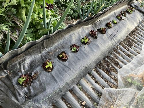 今月中にジャガイモに畝を渡さないといけないので 邪魔にならないところに植え替えました。 後日アブラナ系を収穫して ジャガイモに取り掛かります。