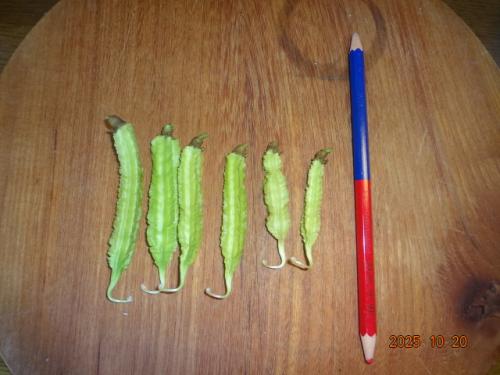 シカクマメ、6個収穫しました。開花してから8日目です。