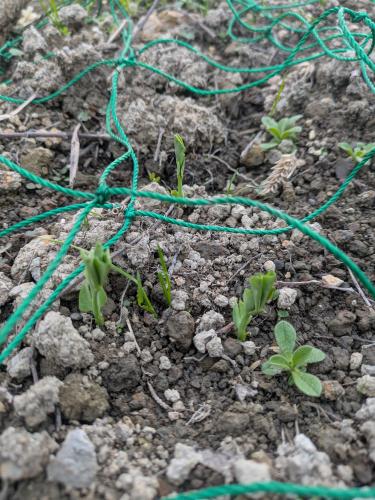 いきなり地植えでいったのでだいぶかかったけど、スナックエンドウの発芽を確認。小さいがw こうなればこっちのもんかな。 あとで籾殻で覆ってあげたらいいかな♪