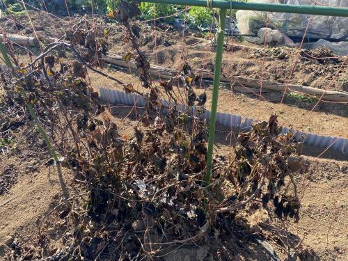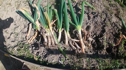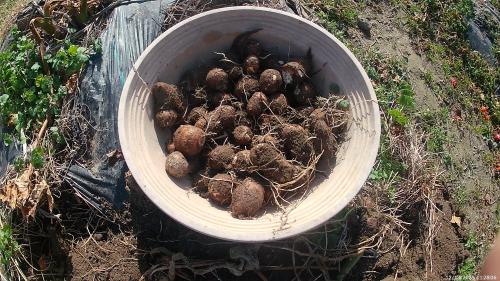 すっかり葉が枯れてしまったので、全て収穫し、終了です。 7月半ば、余りの切り穂を挿した畝。小ぶりだけど、十分満足。