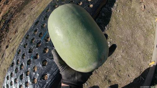 利用可能なミニトウガン2個を最終収穫して 傷みの激しい物は廃棄しました!