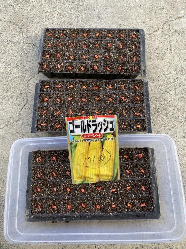 発根処理せずにセルポット32個3台に播種して、 コタツ育苗開始です♪♪♪