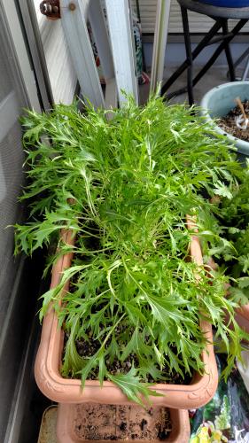 ベランダの水菜を3株残して全部ハサミで切った。 残った水菜は春までにどんどん大きな株になるから まわりから切って食べよう。