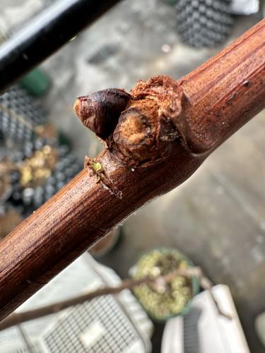 殆どが主枝。短梢は4枝くらいか… 一応芽傷入れたんだけど節がごっつくてどうなんだろう… ちゃんと芽吹いてくれるか不安。