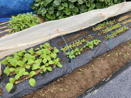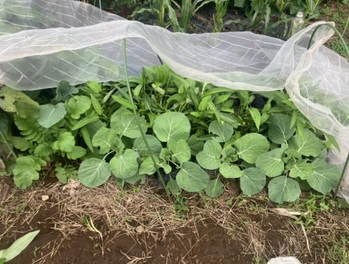 各所、発芽しています。 未発芽ゾーンは再播種し、発芽ゾーンは間引き作業です。 モグラ凹が酷くてイラっとするが、何とか採れそうな感じ。