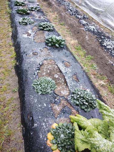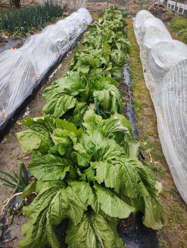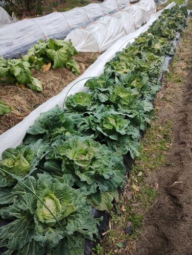 ビニールトンネル内でだいぶ育ってくれたので、収穫までの間ビニールを外し、寒さに当てたいと思います。