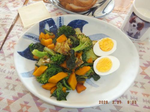 今朝の朝食 炒め物プレート