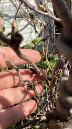 二種植えておらず、結実しないあけび。毎年この時季に芽が出る。