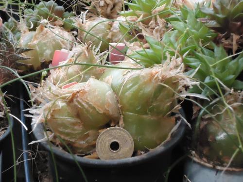 この株。直径まだ10mmちょっと。残念ながら蕾が写ってない