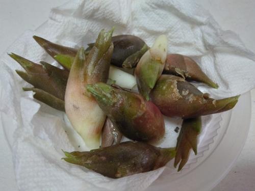 やはり植物には脅しが効く! 先週の日曜にいっぱい採れて、友だちにみなあげちゃったんだけど、漬け物に使うのに3〜4個残しておけばよかったわ。先晩から雨だから出てるかなぁ?見てみよう。